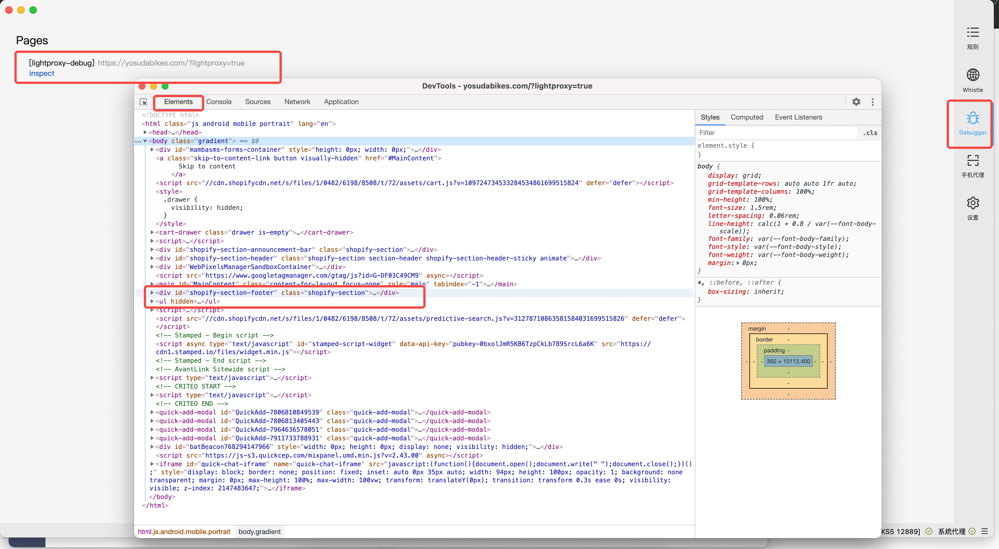 在URL后面添加参数?lightproxy=true,可以在电脑端查看手机移动端上的UI视图结构,实现电脑端调试手机端的实际效果。