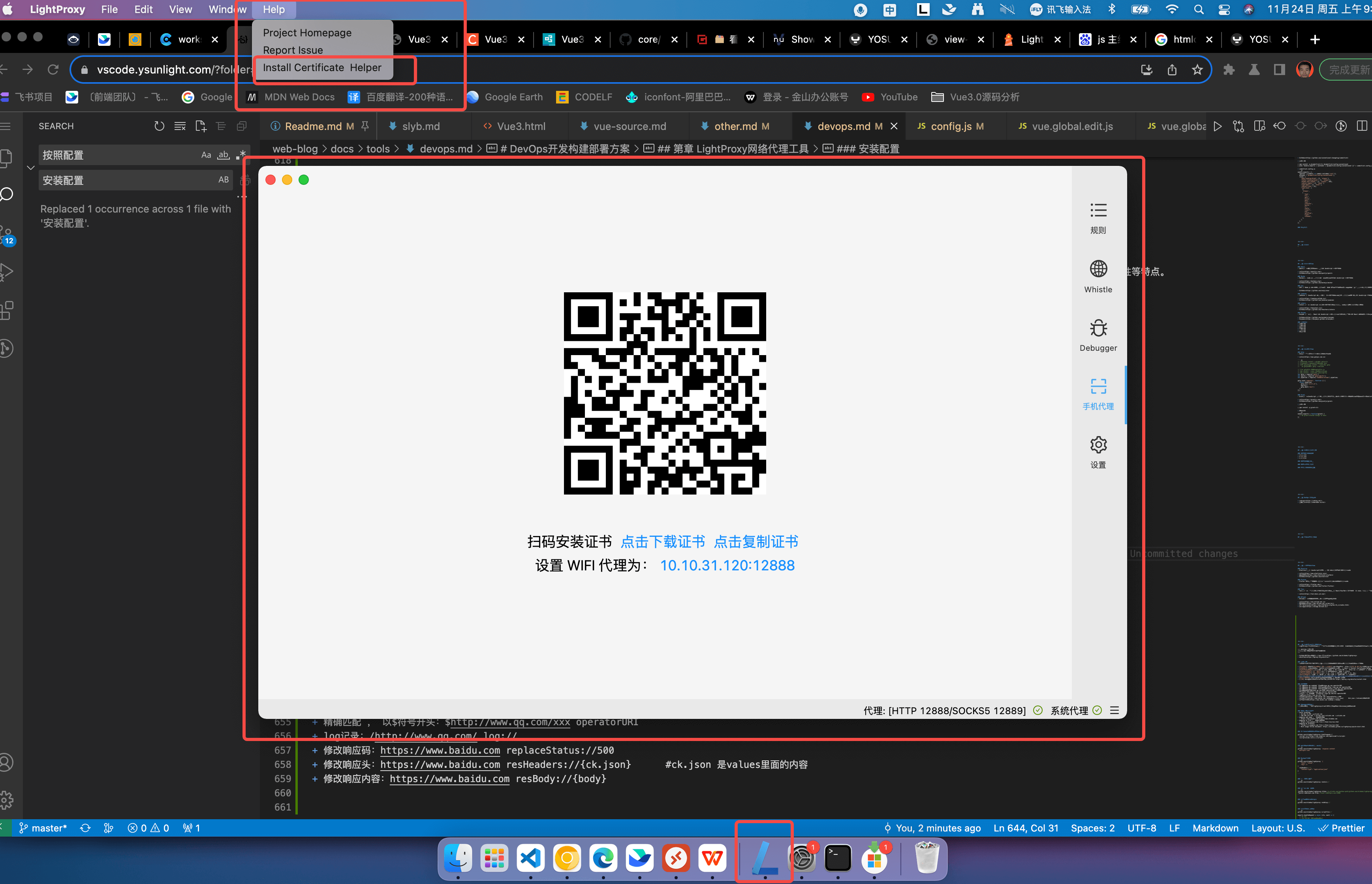 - [下载证书] 切换至[手机代理] [点击复制证书] 查看电脑IPv4 - http://[172.16.40.76]:12888/cgi-bin/rootca | 即可。