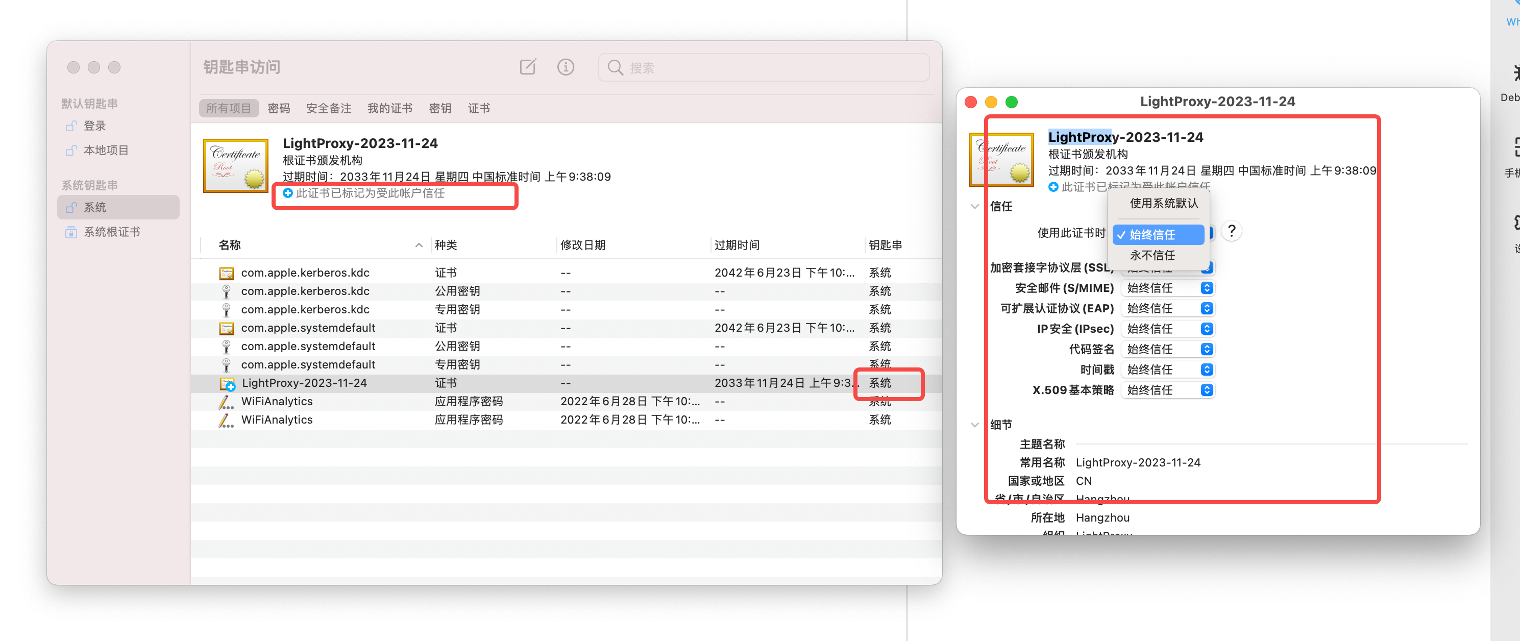 证书按下面步骤安装后,如果还出现安全提醒,这个主要原因是之前你访问过该页面,导致长连接已建立,可以等段时间再访问、或重新打开浏览器,或重启下whistle: w2 restart